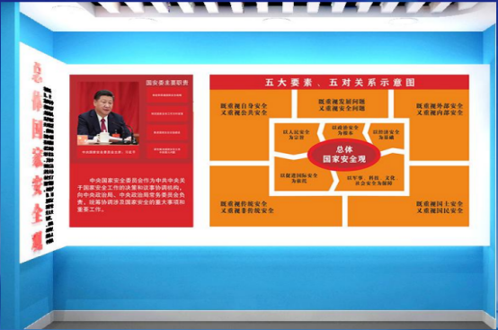 展廳二:從網(wǎng)絡(luò)、社會、金融、生態(tài)、政治五個方面深入剖析國家安全“總體國家安全觀”,將國家安全與每位參觀者緊密聯(lián)系。