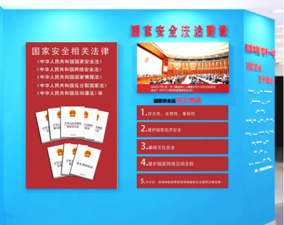 展廳一:展示了“總體國家安全觀”的誕生、內(nèi)容、體系、制度、法律等內(nèi)容,讓游客從整體上把握“總體國家安全觀”。