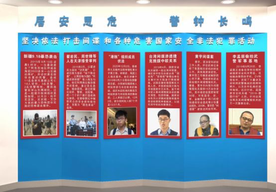 基地陳設(shè)內(nèi)容從“總體國家安全觀”的深刻內(nèi)涵延伸到“身邊的國家安全”,詳細(xì)展示了“總體國家安全觀”的誕生、內(nèi)容、體系、制度、法律等,從網(wǎng)絡(luò)、社會、金融、生態(tài)、政治五個方面深入剖析,與每位參觀者息息相關(guān)。最后,從中國共產(chǎn)黨早期的情報保衛(wèi)機(jī)構(gòu)在武漢誕生、國家安全大事記的正面引領(lǐng),以及依法打擊間諜和各種危害國家安全非法犯罪活動的反面案例,強(qiáng)化參觀者的國家安全意識。