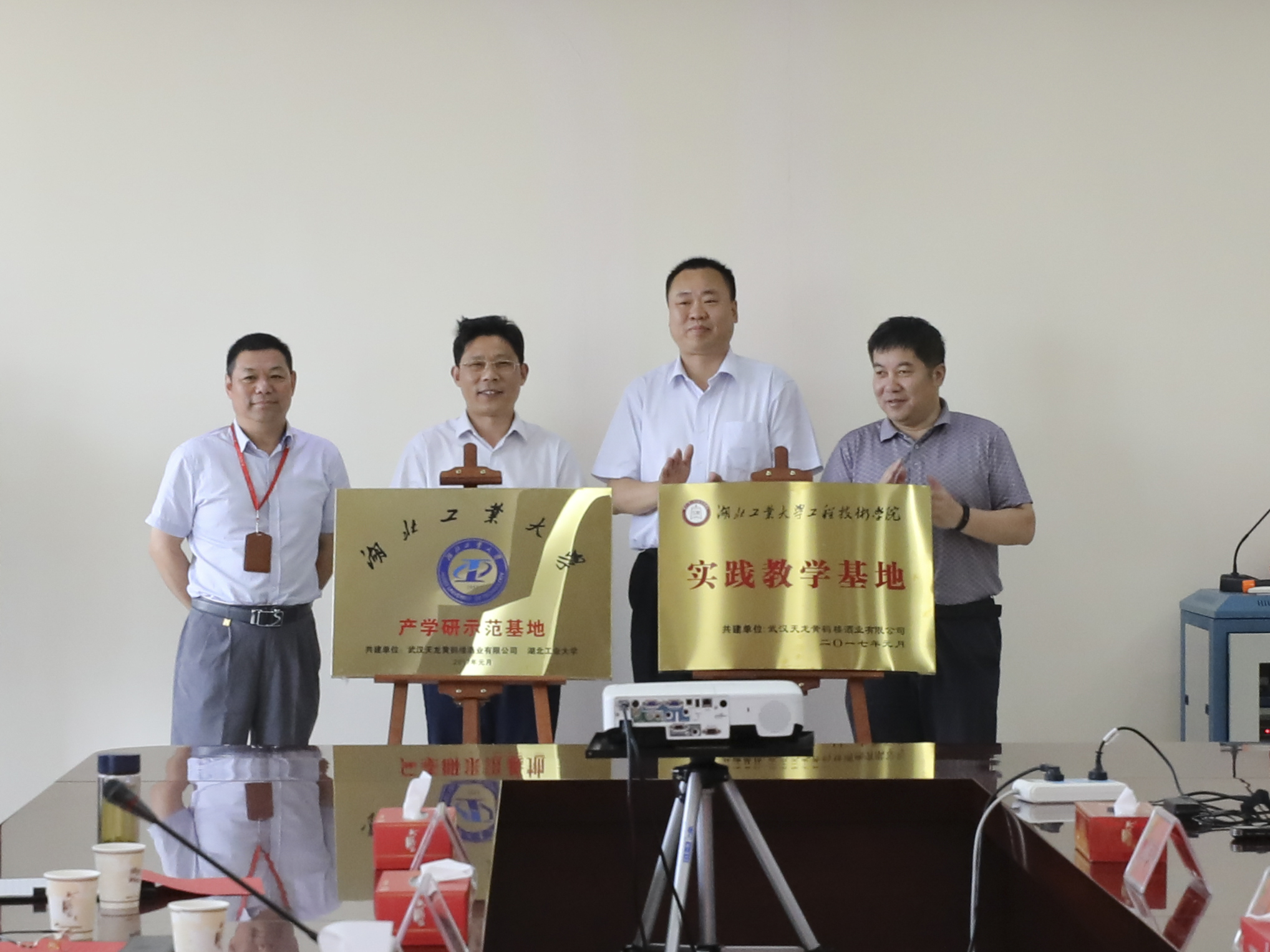 6月2日,湖北工業(yè)大學(xué) “產(chǎn)學(xué)研示范基地”及“實踐教學(xué)基地”授牌儀式在黃鶴樓酒業(yè)咸寧分廠舉行,湖北工業(yè)大學(xué)生物工程學(xué)院院長陳雄,工程技術(shù)學(xué)院副院長胡立新,黃鶴樓酒業(yè)董事長許鵬參加授牌儀式,并進行揭牌。