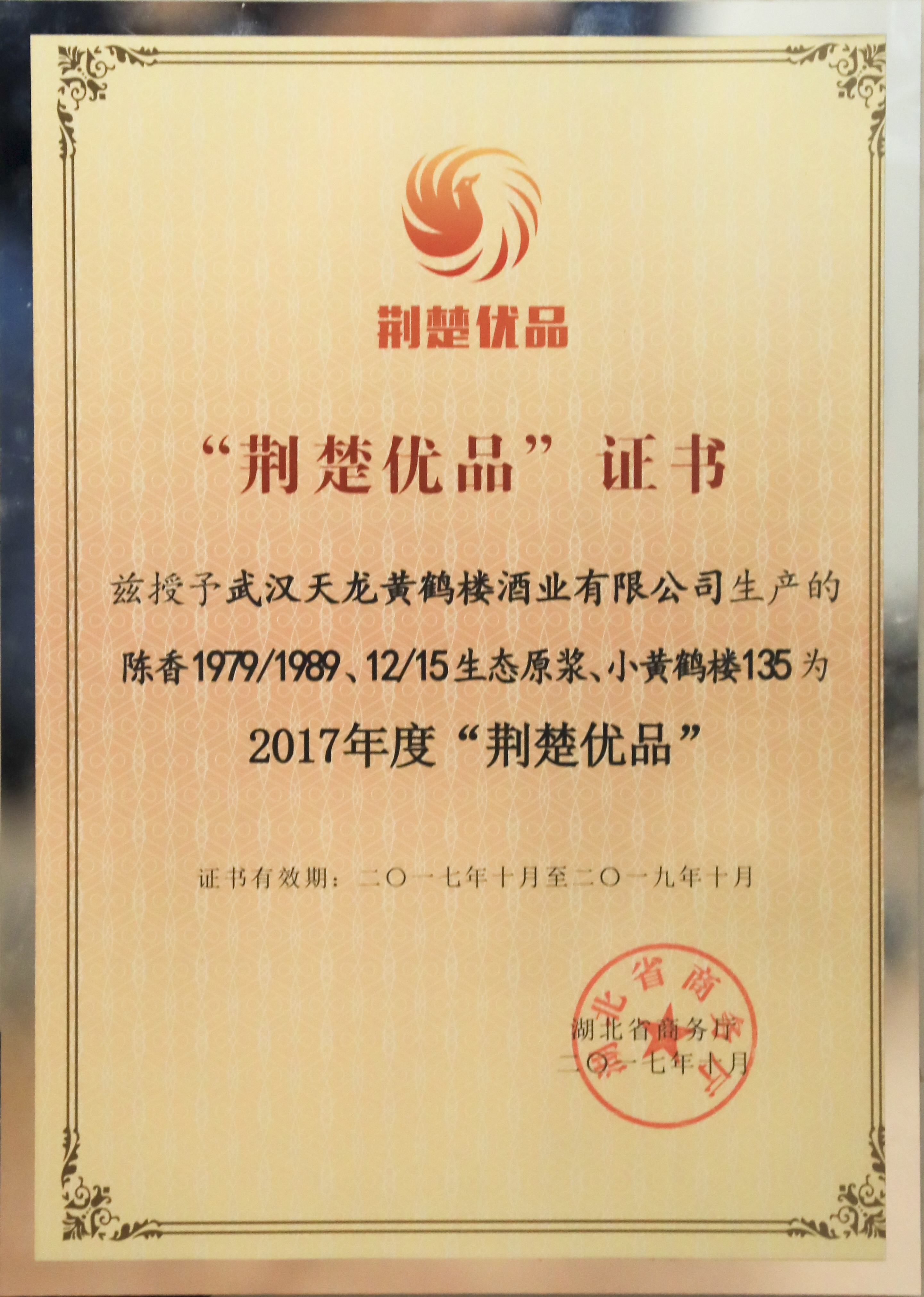 會上,武漢市共有8家企業(yè)產品被省商務廳授予“荊楚優(yōu)品”,其中,黃鶴樓酒業(yè)生產的陳香1979/1989、12/15生態(tài)原漿、小黃鶴樓135等五種產品獲評2017年度“荊楚優(yōu)品”。
